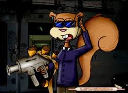 Arenita al estilo "matrix" súper espía con una pistola de bellotas.