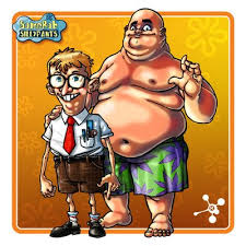 Bob Esponja y Patricio dibujados como humanos.